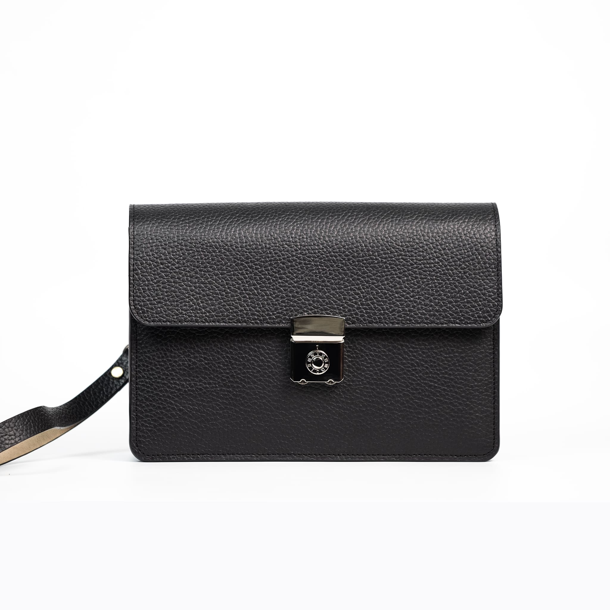 Clutch sử dụng khóa số kim loại cao cấp gồm 2 số và núm xoay 10 nấc, mang đến tính riêng tư và an toàn tuyệt đốicho người dùng. Bộ khóa được chế tác tỉ mỉ, sáng bóng và bền bỉ theo thời gian, đồng thời tạo điểm nhấn sang trọng cho tổng thể túi.