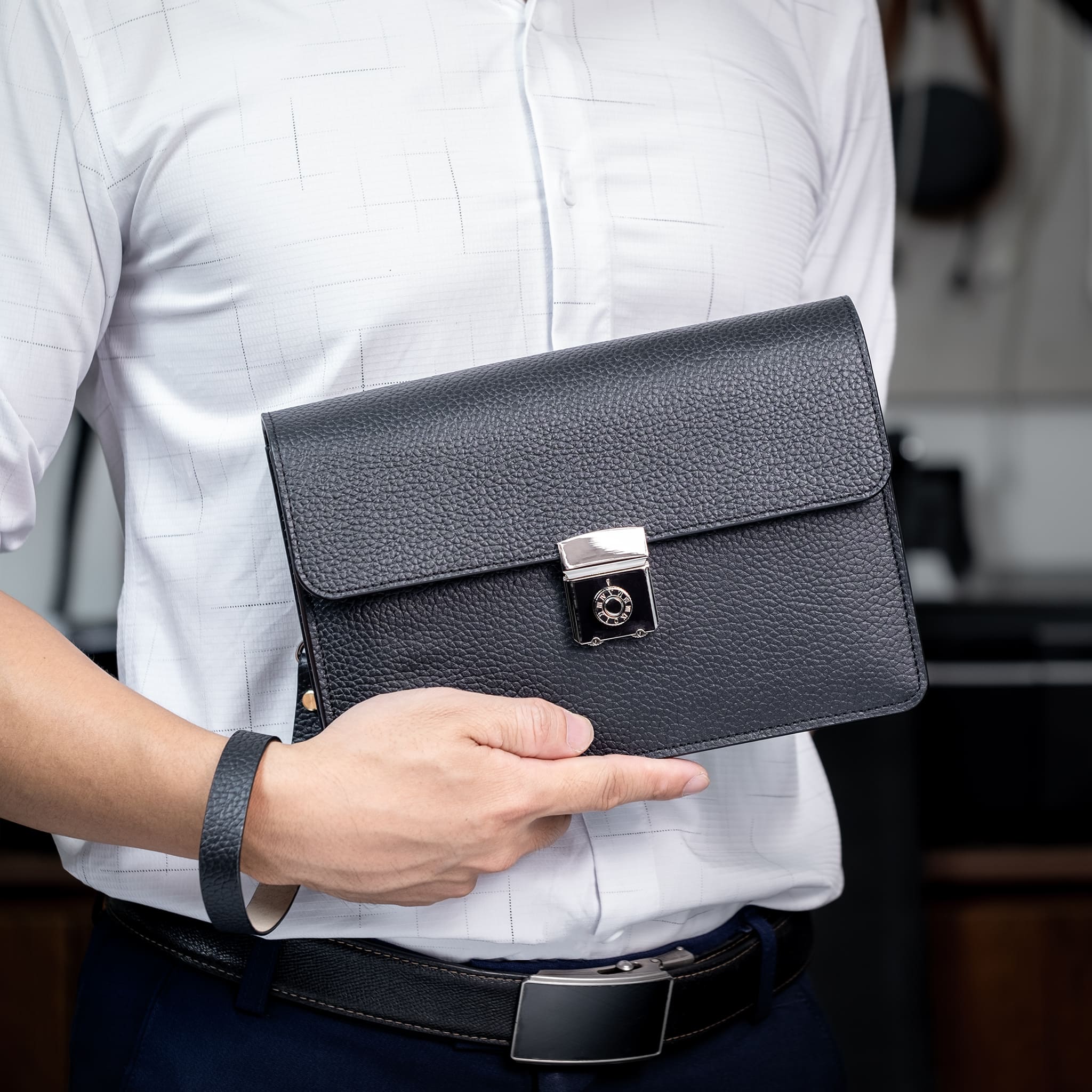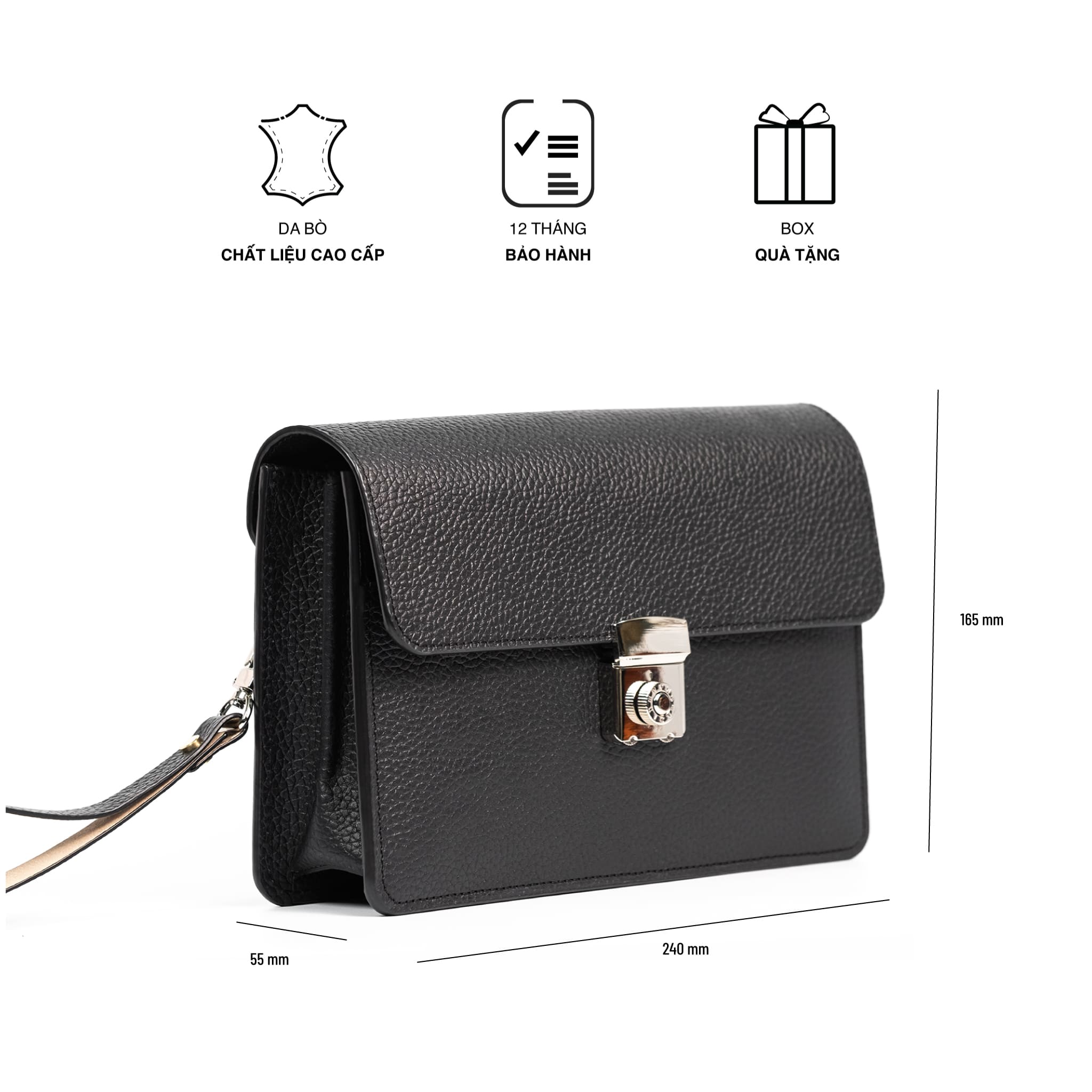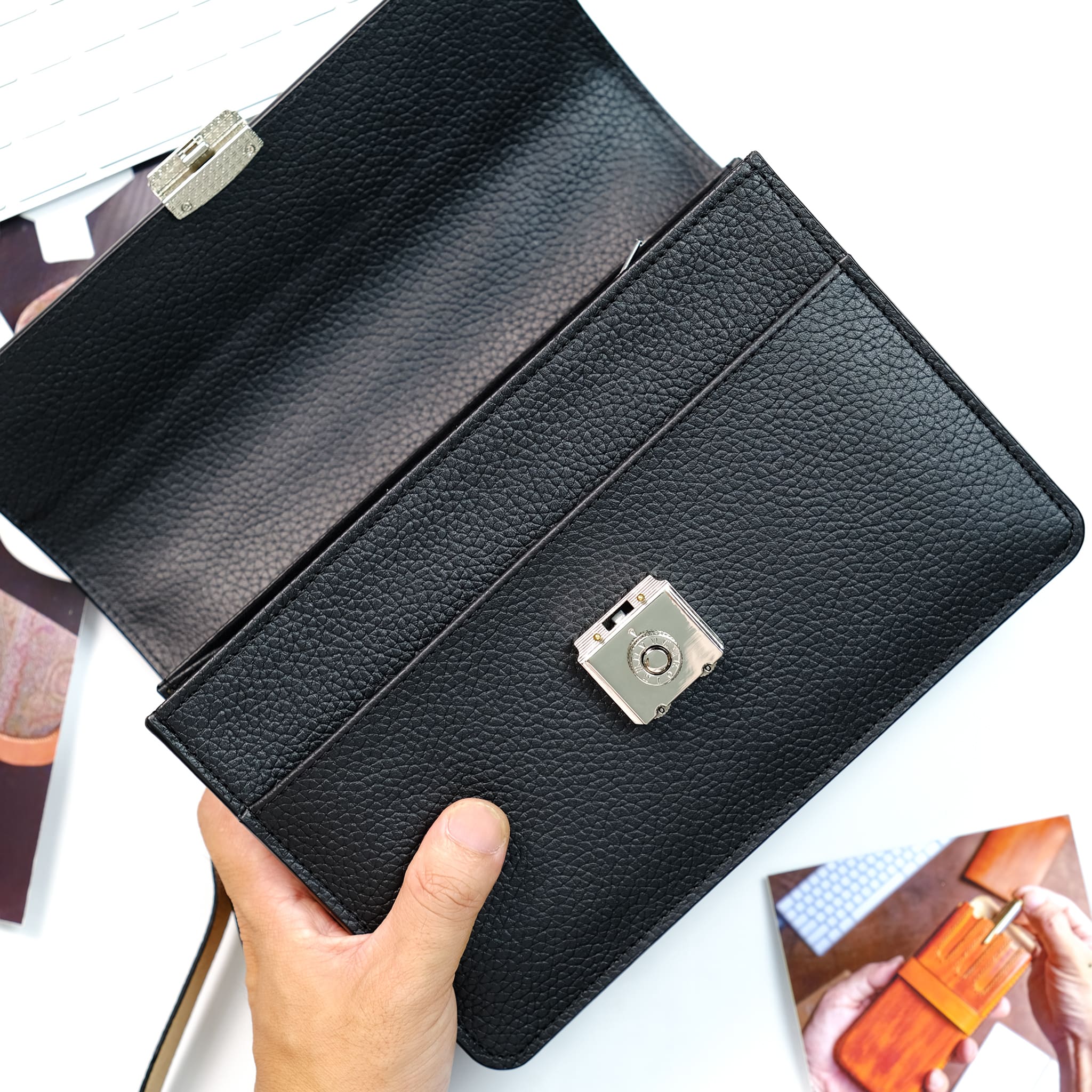 Clutch cầm tay cao cấp da bò thật vân togo sang trọng khoá số bảo mật
