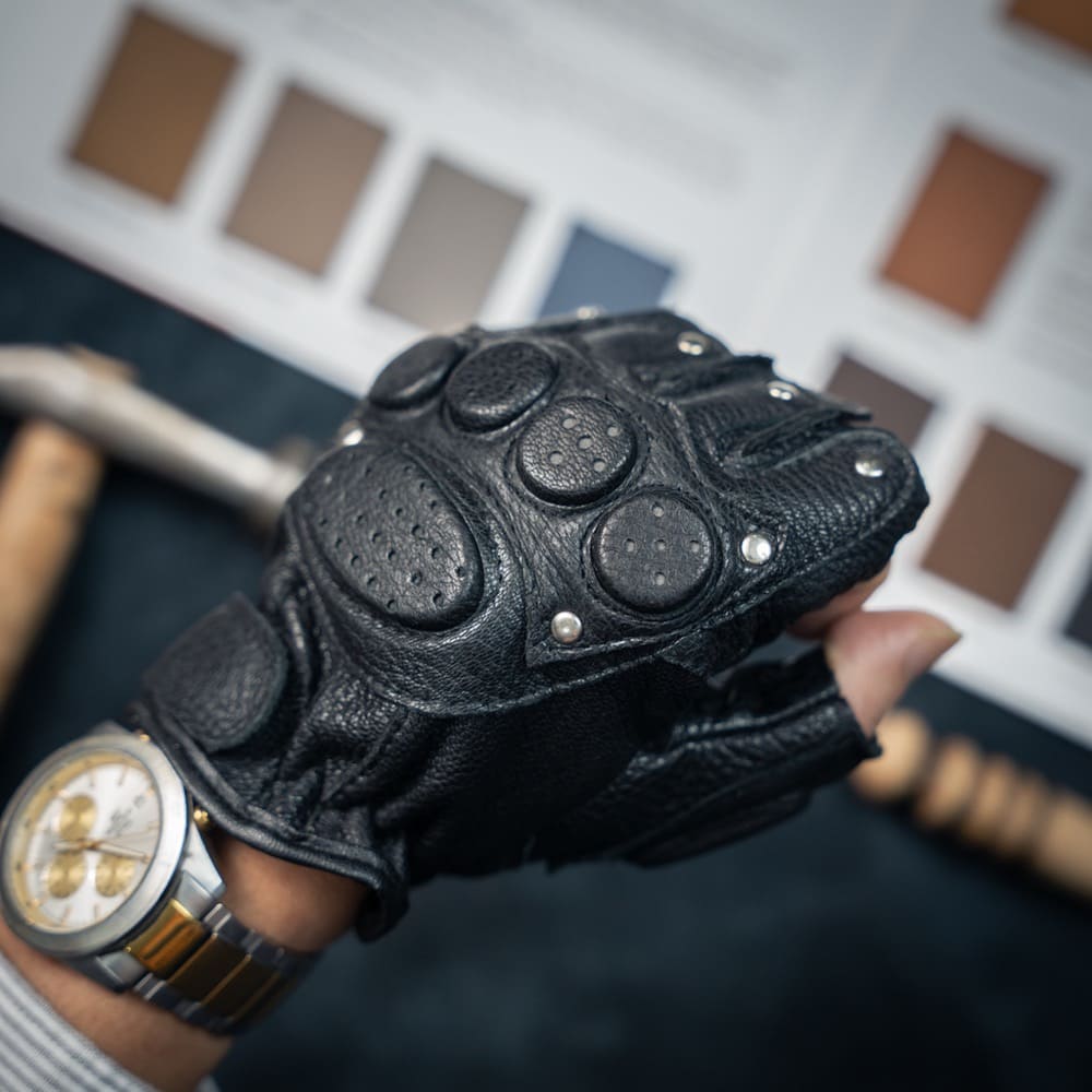 Trang chủ Găng tay da thật Găng tay Biker da cừu hở ngón GBK01