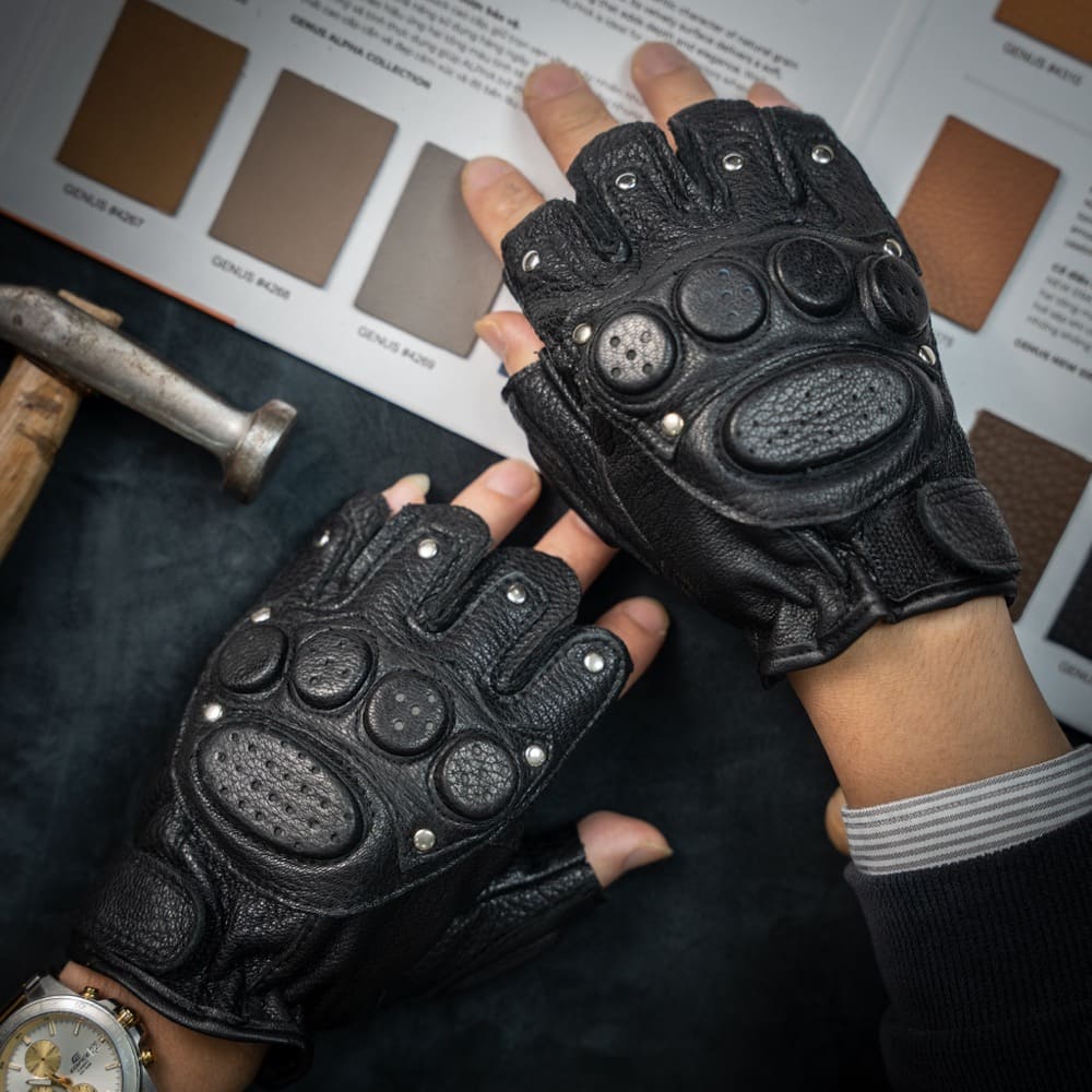 Mẫu găng tay biker hở ngón cao cấp được hoàn thiện từ dòng da cừu thật cao cấp