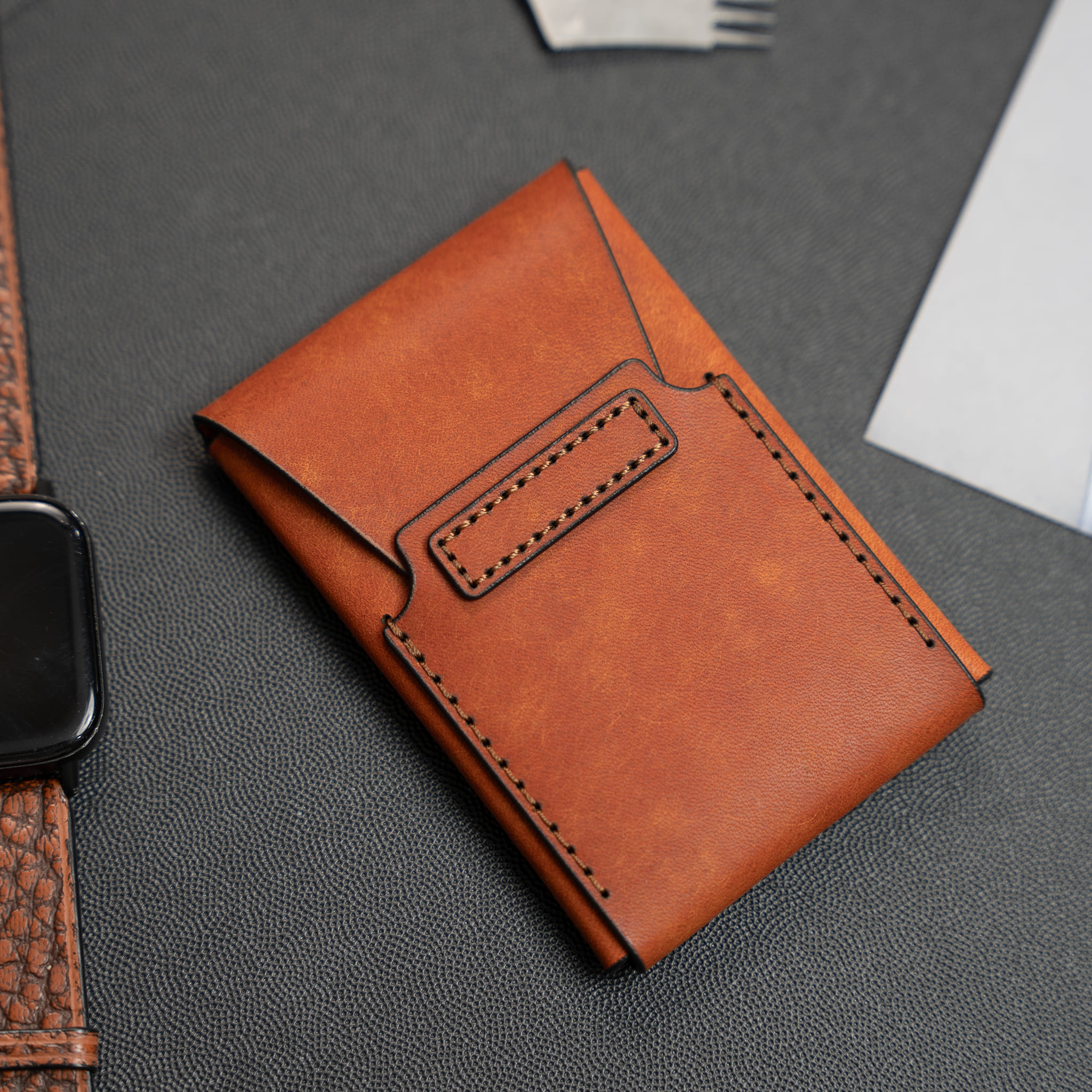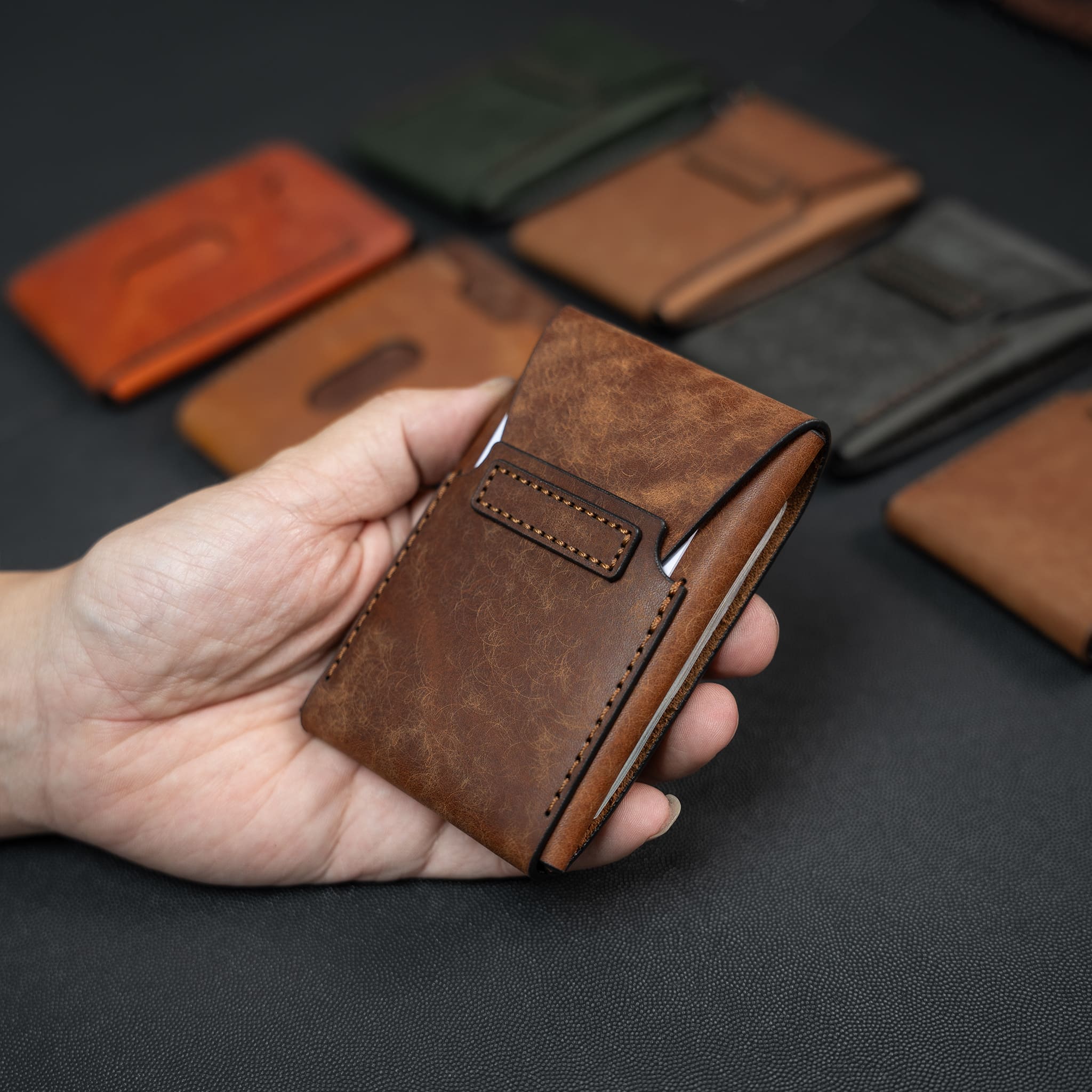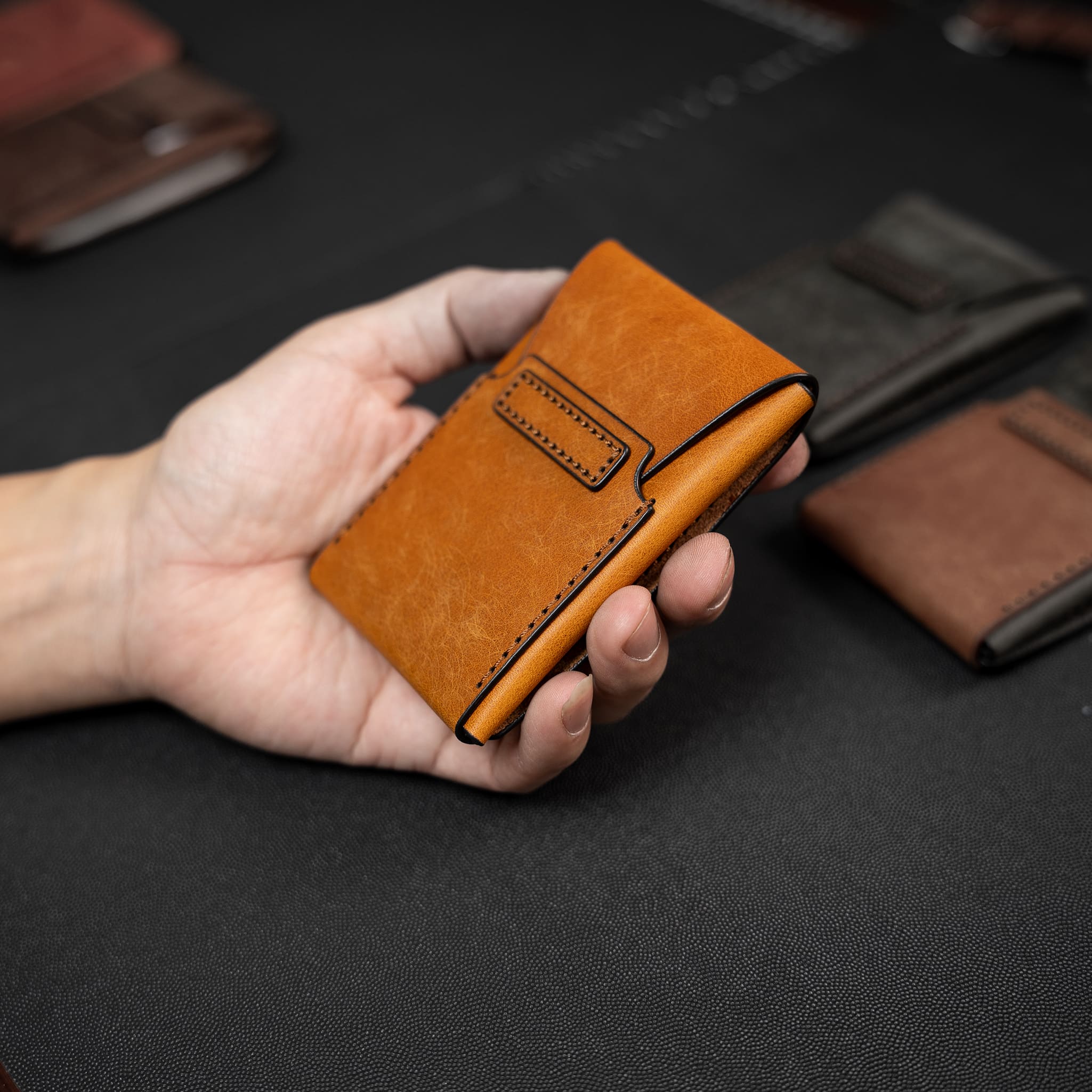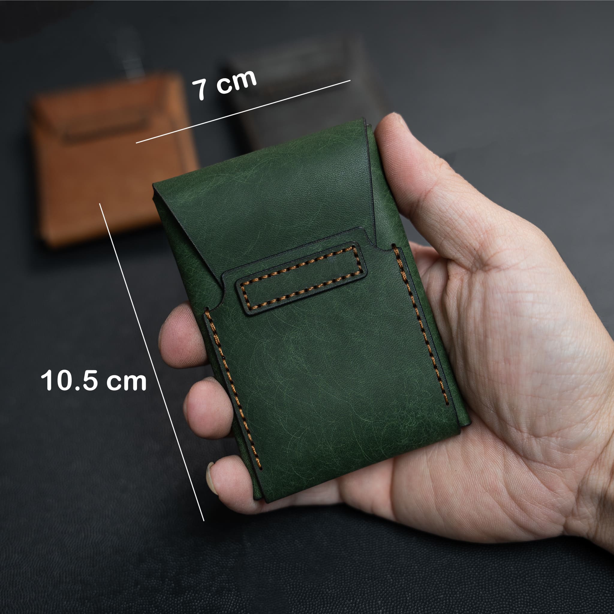 Ví da nhỏ gọn khâu tay thủ công từ da Vegtan